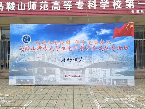 本网讯 寒雪梅中尽,春风柳上归。为创建和谐校园,倡导文明新风,做好大学生文明素质养成教育工作,3月26日中午,马鞍山师范高等专科学校大学生文明素质养成教育活动启动仪式于学生食堂门口开展。校党委委员、副校长、宣传部长李秀华出席仪式并讲话,学工部门负责人、各系分管学生工作领导、团总支书记、全体辅导员及学生代表参加了本次活动。本次启动仪式由学工部副部长、学生处副处长汪志彬主持。