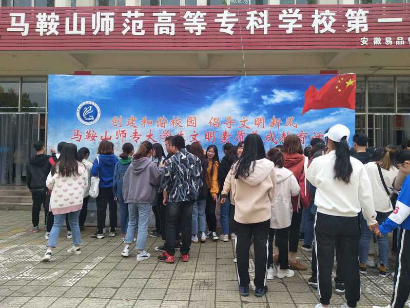 仪式上,汪志彬就学校大学生文明素质养成教育活动方案进行了说明。最后,李秀华宣布本学期马鞍山师范高等专科学校大学生文明素质养成活动正式开始,并请各位嘉宾、代表轮流上台在活动喷绘上签署自己的姓名,表达对参与大学生文明素质养成教育活动的决心。(文/青春通讯社记者孙丽娜 图/吴婷婷 审核/汪志彬)