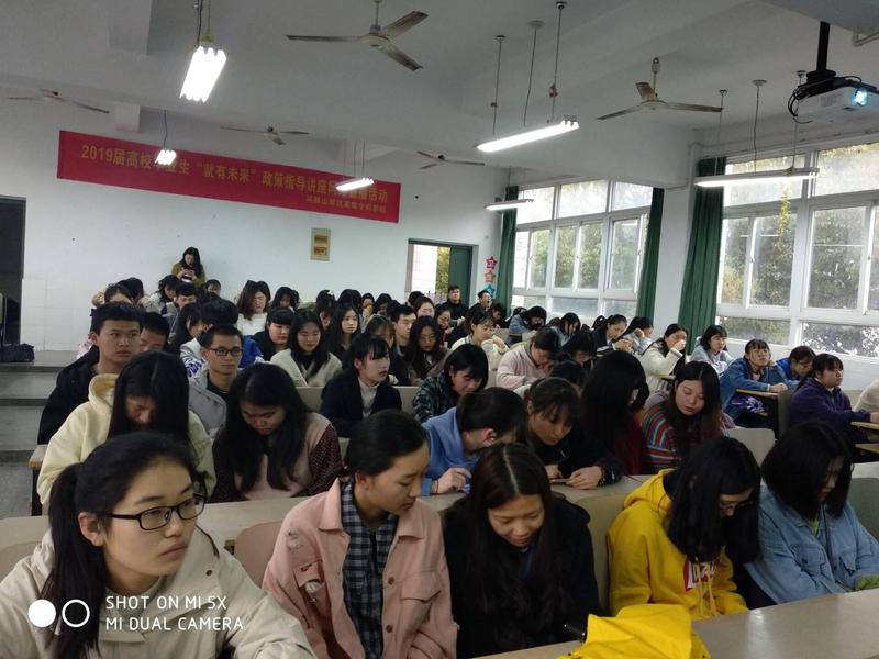 本网讯 3月27日下午,马鞍山师范高等专科学校组织收看“就有未来”——全省高校就业指导专题讲座网络直播。招生就业办公室副主任晋愈飞、各系辅导员代表及120名学生在学校分会场现场观看。