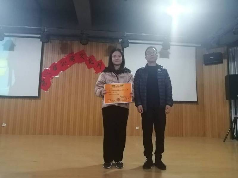 闭幕式在激情动感的街舞中拉开帷幕。在本次公寓文化月各项比赛中,各系部都能踊跃参加并取得了优异的成绩。晚会现场,公寓管理中心通过大屏幕,用PPT展示了本次公寓文化月活动成果,有寝室装扮大赛获奖寝室、公寓社区化建设优胜系部、趣味运动会获奖寝室及宿舍雅号征集获奖寝室等。其中,宿舍雅号征集活动中同学们奇思妙想的宿舍雅号,颇具趣味性,令在场领导老师和同学们忍俊不禁。学工部副部长、学生处处长汪志彬宣读本次活动获奖名单,各到场嘉宾为获奖寝室发放奖状及奖品。