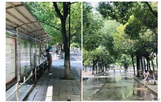 近日,物业公司配合公寓管理中心开展卫生清洁工作,更换拆除破旧的宣传栏,打扫寝室及楼道内的卫生,擦拭公寓橱窗玻璃保证橱窗内部的清洁,师傅们冒着炎热,冲洗公寓区道路地面,以最清洁和舒适的环境迎接每一位同学。(文、图/杨文超 审核/晋愈飞)