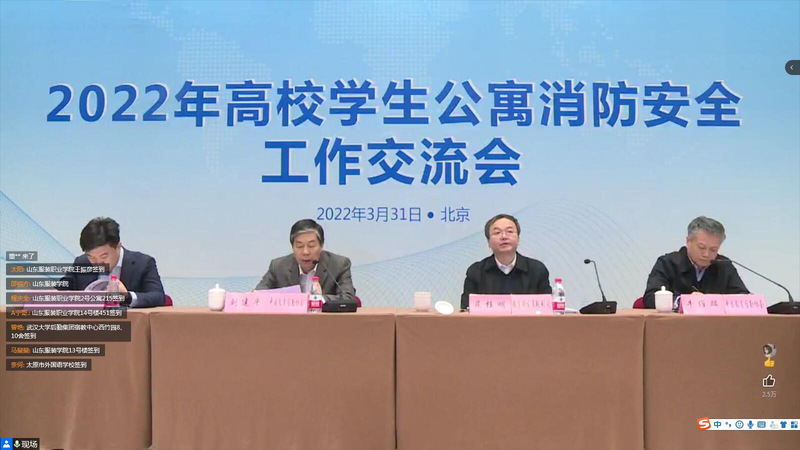 本网讯 为贯彻落实党中央、国务院,应急管理部和教育部关于安全生产、应急管理、防灾减灾的决策部署,传达教育部有关高校学生公寓消防安全工作的指示精神,交流各地方、各高校有关学生公寓安全管理的经验做法。3月31日下午2:30,中国教育后勤协会安全管理专业委员会、学生公寓管理专业委员会召开了“2022年高校学生公寓消防安全线上研讨会”。校学生处副处长晋愈飞、学生公寓管理中心及物业公司全体工作人员参加线上研讨会。