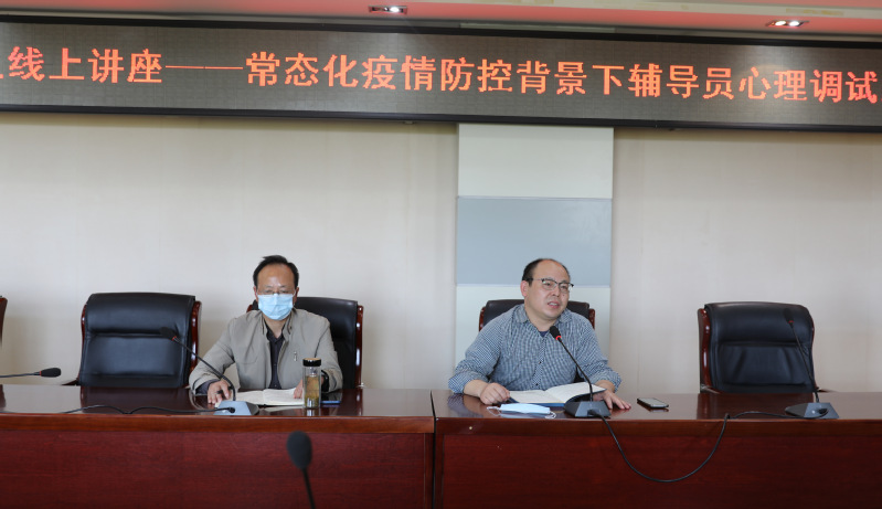 本网讯 4月8日下午,学校在行政楼302会议室组织召开了常态化疫情防控背景下辅导员心理调试及学生心理疏导方法的线上视频培训会议。校党委委员、副校长周志亮出席会议并讲话,学工部部长、学生处处长汪志彬主持会议。
