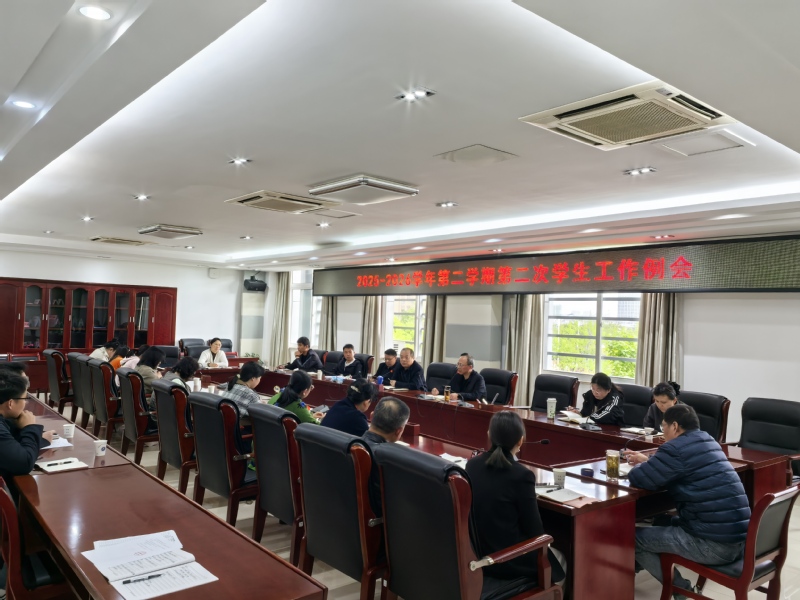 为进一步加强学生日常教育管理,强化学生文明习惯养成,抓实校园安全教育,扎实做好教育部专家进校考察各项学生工作,学校于2026年4月14日下午在行政楼302会议室召开了本学期第二次学生工作例会,校党委副书记、副校长杜维斌出席会议并讲话。会议由学工部部长、学生处处长汪志彬主持。