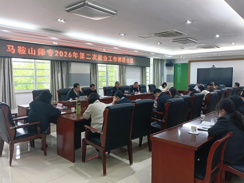 4月16日下午,学校2026年第二次就业工作推进会议在雨山校区行政楼302会议室召开。校领导杜维斌出席会议并讲话,学生处处长汪志彬主持会议。